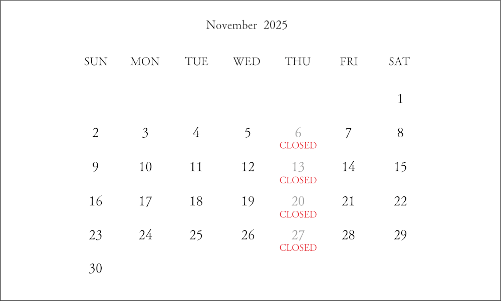 11月の休業日については下記の通りとさせていただきます。